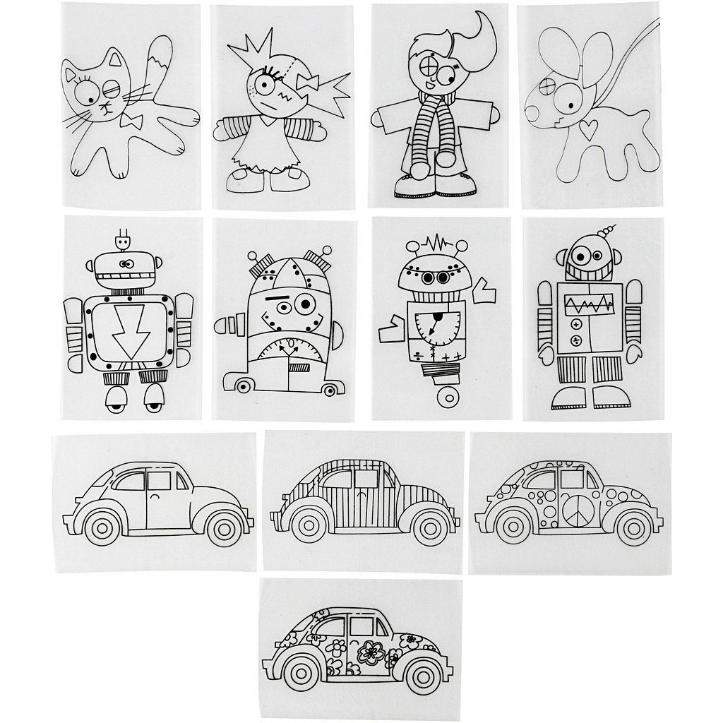 Creativ Company Vellen krimpfolie met motieven, vel 10,5x14,5 cm, dikte 0,3 mm, mat transparant, 36 vel/ 1 doos