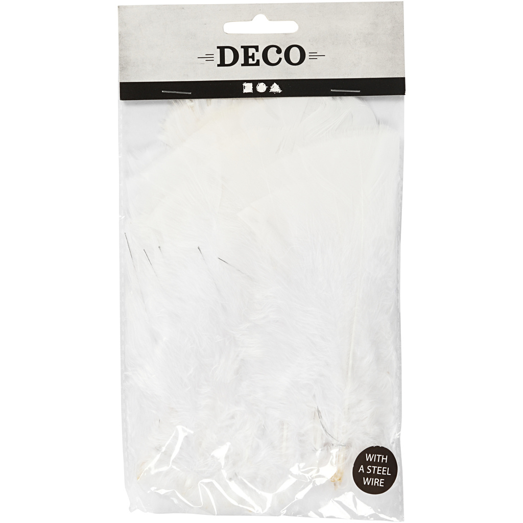De Creativ Company veren zijn een veelzijdig product dat perfect past bij allerlei creatieve projecten. Deze witte veren, geleverd in een doos met achttien stuks, hebben een lengte van 11 tot 17 centimeter. Dankzij hun frisse witte kleur zijn ze eenvoudig te combineren met andere materialen voor decoraties, kostuums of knutselwerk.