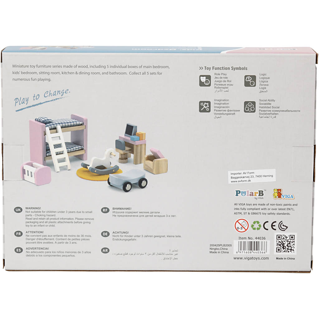 VIGA VIGA Meubilair voor poppenhuis, de kinderkamer, afm 2x2x7,5 cm, 8 onderdelen/ 1 set