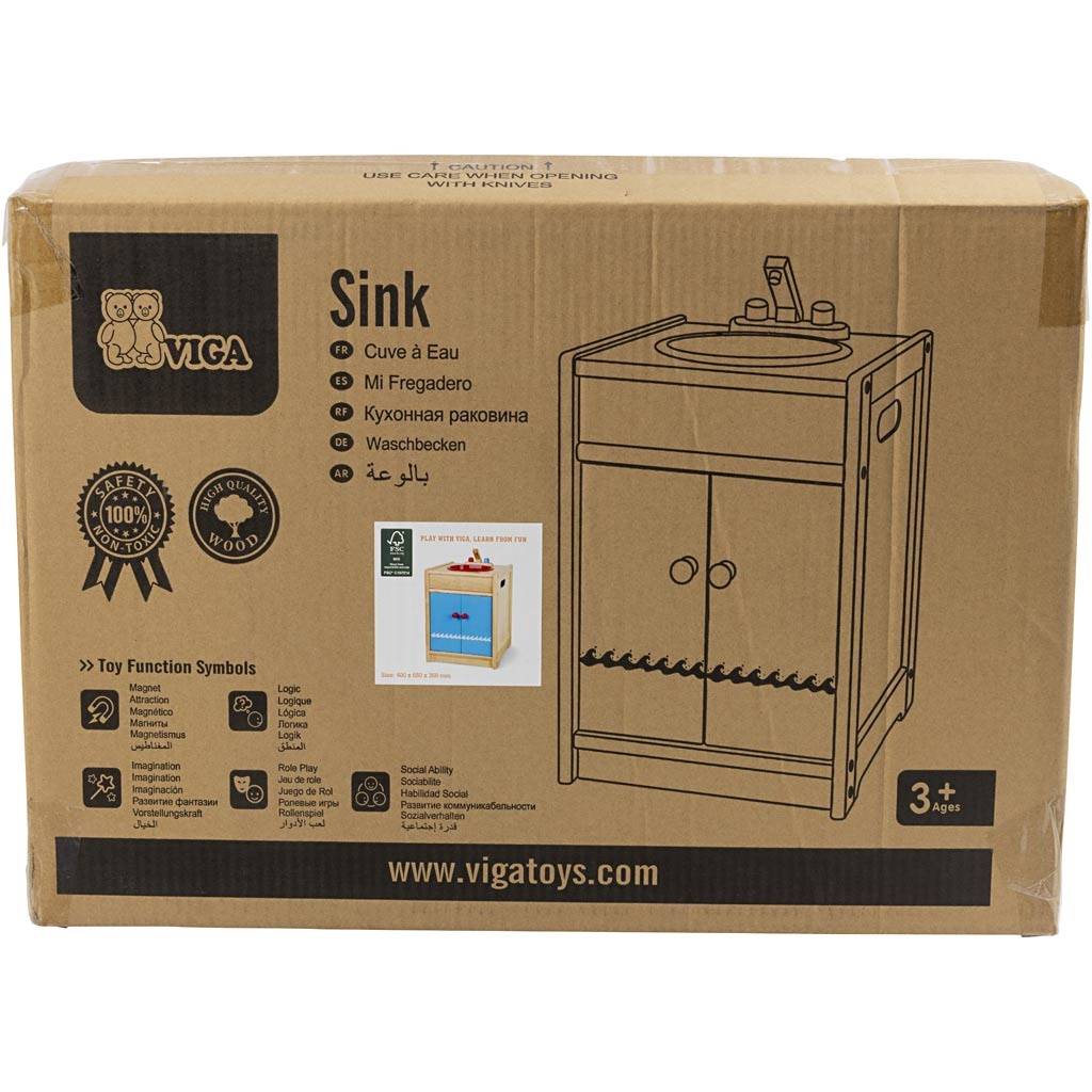 De VIGA speelgootsteen is een speelkeukenaccessoire van het merk VIGA, gemaakt van hoogwaardig hout. Dit product, met afmetingen van circa 40 bij 54 bij 36 centimeter, biedt kinderen een realistische en fantasierijke aanvulling op hun speelhoek of klaslokaal. De houten constructie zorgt voor een stevige structuur die tegen een stootje kan, waardoor dit speelgoed ideaal is voor intensief gebruik.