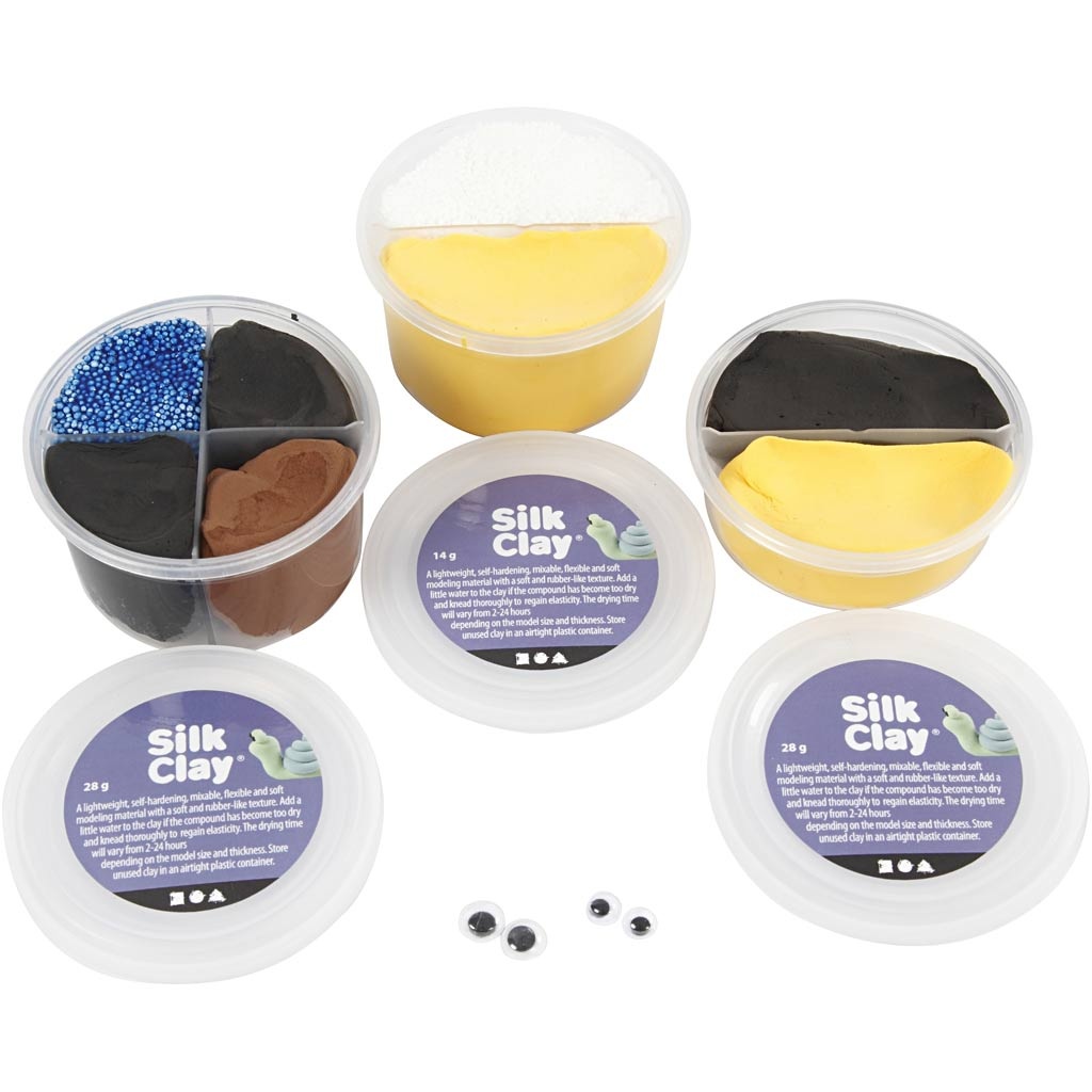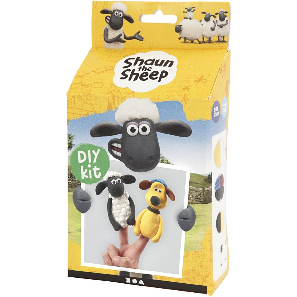 Materialenset voor het boetseren van Shaun en Bitzer als vingerpoppen van Shaun het Schaap in Silk Clay® en Foam Clay®. Inclusief instructie