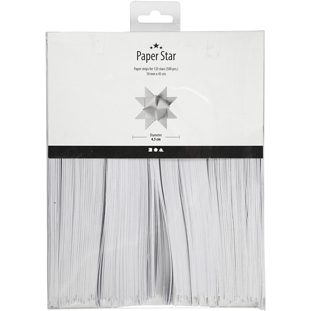Traditionele papieren stroken voor het maken van gevouwen sterren - de diameter geeft de grote van de gevouwen ster aan