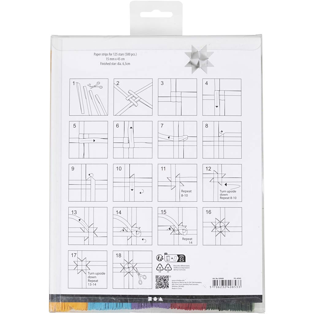 Traditionele papieren stroken voor het maken van gevouwen sterren - de diameter geeft de grote van de gevouwen ster aan Lees meer
