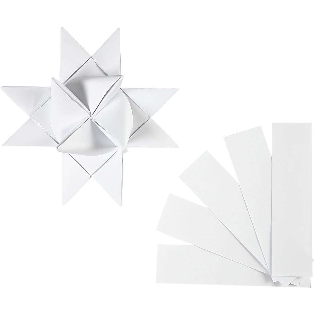 Traditionele papieren stroken voor het maken van gevouwen sterren - de diameter geeft de grote van de gevouwen ster aan
