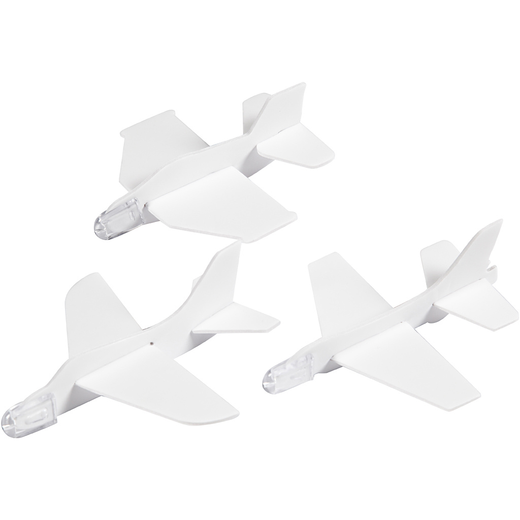 Creativ Company Vliegtuigen, L: 11,5-12,5 cm, B: 11-12 cm, wit, 3 stuk/ 1 doos